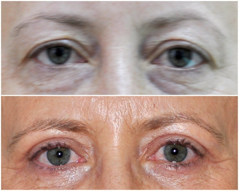 Najvážnejšou komplikáciou ma spodných viečkach je vznik ektropie - stav kedy koža ťahá a viečko nie je možné dobre zavrieť. Významnou prevenciou je dodržanie pooperaného kľudu. Stav sa len pomaly upravuje pomocou masáží a ďalších opatrení. Ďalšou komplikáciou je vznik organizovaného hematómu v podkoží. Ten sa vždy vstrebe, ale môže to výrazne predĺžiť hojenie. V tomto prípade je vhodné hematóm vypustiť.